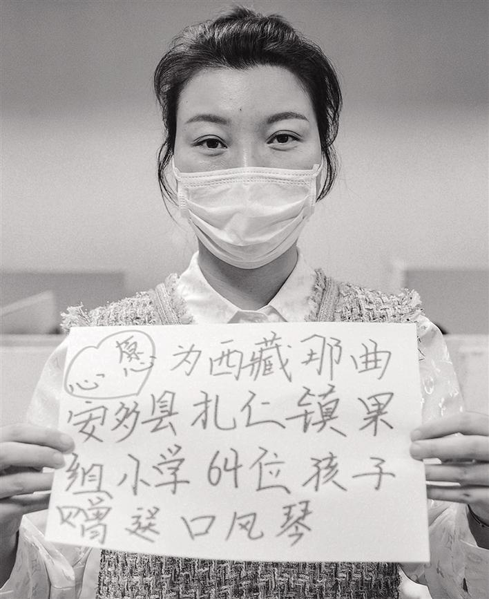 3月6日,為了讓奮戰(zhàn)在抗疫一線的英雄感受到社會的敬意,阿里巴巴天天正能量聯(lián)合全國媒體發(fā)起了“共圓英雄夢”活動。記者詢問柏雪有什么心愿,她說:“我想給西藏那曲市安多縣扎仁鎮(zhèn)果組小學(xué)的64名孩子送口風(fēng)琴!”