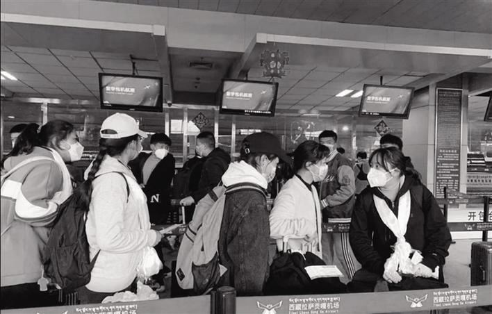 民航西藏區(qū)局地服部分析保障特點,提前將托運行李、手提行李相關規(guī)定通過校方傳達給學生及家長,以降低開包率;開設專屬值機柜臺,由業(yè)務骨干專人負責,提高值機效率;安檢站研判短時過檢需求,現(xiàn)有安檢通道全部開放,為復學包機學生開辟“綠色通道”,縮短安檢排隊時間;增設專人引導,進行現(xiàn)場秩序維護,提醒學生佩戴口罩、做好個人防護。工作人員用一句句親切的文明用語、飽滿的熱情,為西藏未來的“造血干細胞”提供細致入微的服務。