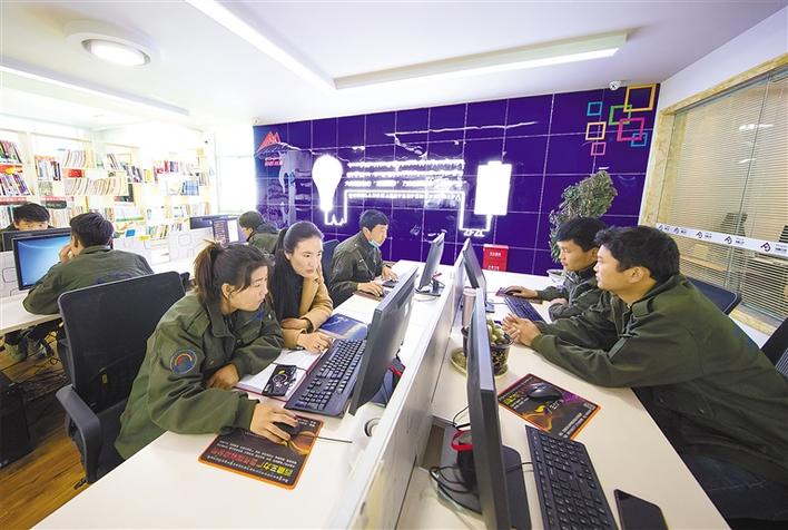 圖為在該公司就業(yè)的高校畢業(yè)生正在設(shè)計廣告文案。記者 格桑吉美 攝