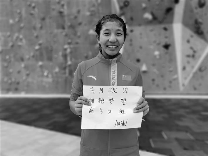 “乘風破浪,擁抱夢想,高考必勝?!蔽鞑鼗╆牭年爢T們也送來了祝福。