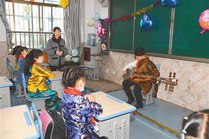 圖為拉薩市北京小學西校區(qū)的孩子們在主題班會上展示才藝。記者 唐斌 次旺 攝