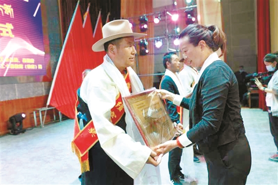圖為墨竹工卡縣相關(guān)負(fù)責(zé)人為受表彰者頒獎(jiǎng)。 拉薩融媒通訊員 洛 克攝