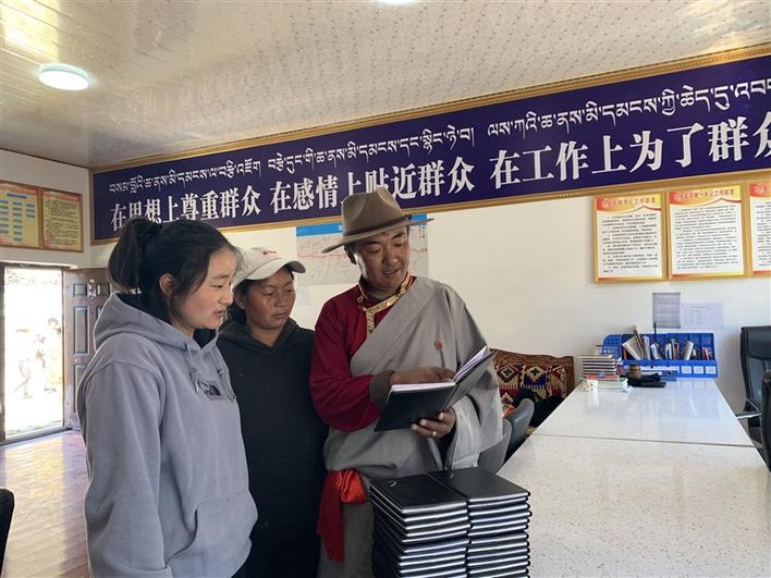 圖為察隅縣古玉鄉(xiāng)古井村黨支部書記羅布扎西在給村里的“雙聯(lián)戶”黨員講解如何做黨員筆記。西藏日報(bào)記者 張猛 本報(bào)通訊員 魯茸七林 攝