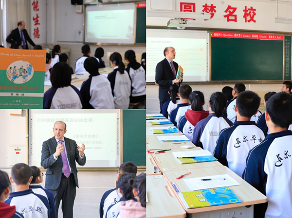 《用英語講中國故事大課堂》領銜主講斯明誠(Symington)在宜川中學與學生交流。