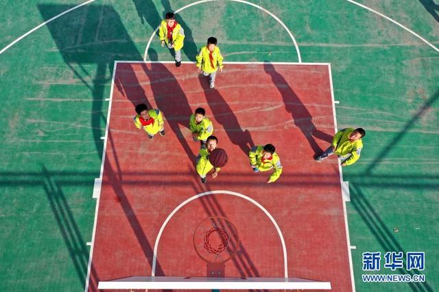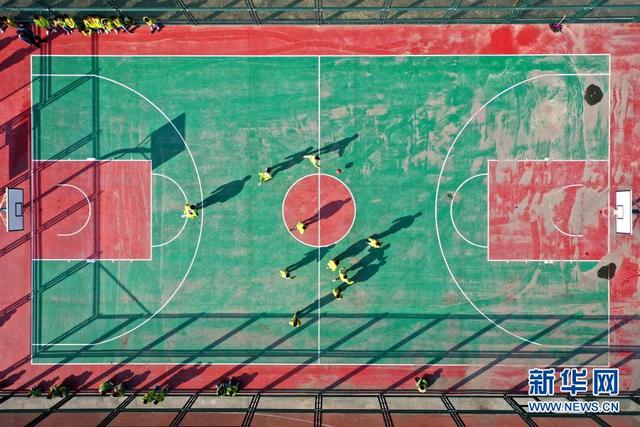 11月12日,學(xué)生在大課間打籃球(無(wú)人機(jī)照片)。 位于山東省青島市即墨區(qū)的青島藍(lán)谷高新區(qū)東皋埠小學(xué)是一所鄉(xiāng)村學(xué)校,近年來(lái),學(xué)校開(kāi)展以乒乓球、籃球、跳繩等運(yùn)動(dòng)為主的大課間活動(dòng),讓孩子們?cè)谙硎苓\(yùn)動(dòng)的同時(shí)愉悅身心,增強(qiáng)體質(zhì)。 新華社發(fā)(梁孝鵬攝)