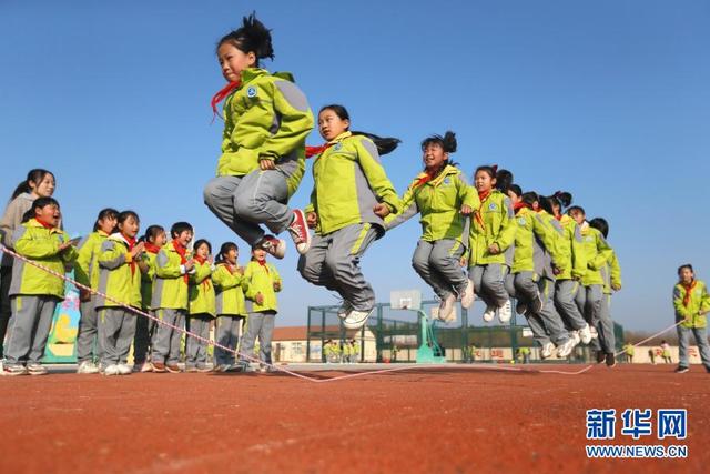 11月12日,學(xué)生在大課間參加集體跳繩。 位于山東省青島市即墨區(qū)的青島藍(lán)谷高新區(qū)東皋埠小學(xué)是一所鄉(xiāng)村學(xué)校,近年來(lái),學(xué)校開(kāi)展以乒乓球、籃球、跳繩等運(yùn)動(dòng)為主的大課間活動(dòng),讓孩子們?cè)谙硎苓\(yùn)動(dòng)的同時(shí)愉悅身心,增強(qiáng)體質(zhì)。 新華社發(fā)(梁孝鵬攝)