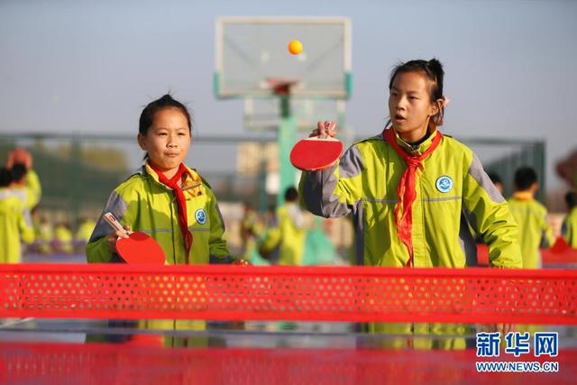 11月12日,學(xué)生在大課間打乒乓球。 位于山東省青島市即墨區(qū)的青島藍(lán)谷高新區(qū)東皋埠小學(xué)是一所鄉(xiāng)村學(xué)校,近年來(lái),學(xué)校開(kāi)展以乒乓球、籃球、跳繩等運(yùn)動(dòng)為主的大課間活動(dòng),讓孩子們?cè)谙硎苓\(yùn)動(dòng)的同時(shí)愉悅身心,增強(qiáng)體質(zhì)。 新華社發(fā)(梁孝鵬攝)