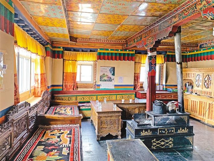 次仁玉珍今年60歲,家里有兩個女兒。走進次仁玉珍家,干凈的小院、寬敞的房子、屋內(nèi)各式家具家電一應(yīng)俱全?!耙郧埃依锏姆孔佑中∮制?,只有幾十平方米,每逢下雨,屋子還漏雨。2016年,政府幫我們翻修擴建了房子,我們自己只出了5000元,現(xiàn)在的新房有250平方米左右?!贝笈畠捍稳恃虢鹫f。
