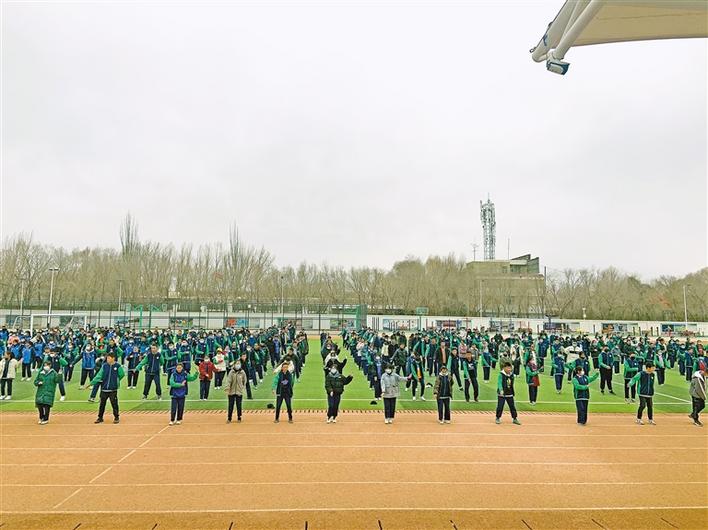 站好、列隊,合著音樂的節(jié)奏,鍋莊舞整齊劃一地舞動了起來。每周兩次的鍋莊舞有別于傳統(tǒng)課間體操,更富民族特色,也更為歡快靈動。
