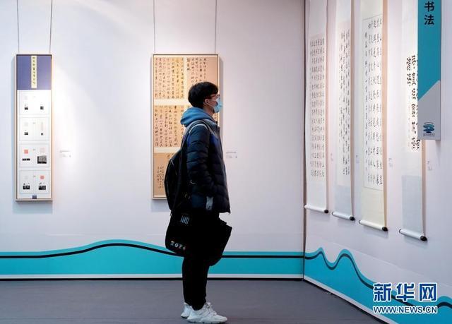 12月15日,一名參觀(guān)者在欣賞大學(xué)生書(shū)法作品。新華社記者 劉穎 攝