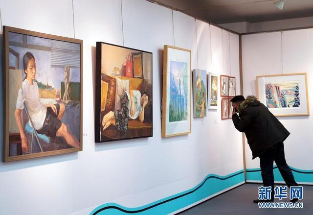 12月15日,參觀(guān)者在觀(guān)看大學(xué)生繪畫(huà)作品。