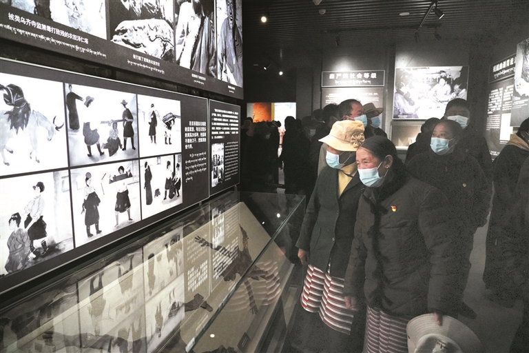 圖為4月7日上午,在西藏百萬農(nóng)奴解放紀(jì)念館參觀的堆龍德慶區(qū)基層黨員。 索朗多杰攝