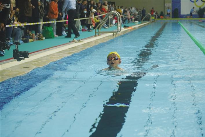 比賽現(xiàn)場,泳池邊一派熱鬧景象,小朋友們摩拳擦掌,舒展筋骨,認(rèn)真做著熱身運(yùn)動?!班?!”槍聲響起的那一刻,選手們一個個猶如離弦之箭在50米的賽道上沖刺,朝著對岸終點(diǎn)勇往直前。選手們?nèi)σ愿?,爭分奪秒,碧水中揚(yáng)起層層水花,完美展現(xiàn)了參賽選手的風(fēng)采和游泳運(yùn)動的魅力。家長們在一旁打氣助威,拍視頻記錄著這一刻,選手奮力朝著對岸游動,永不放棄的精神,感動著觀看比賽的每一個人,賽場頓時暖了起來。