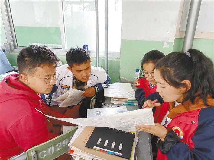 圖為西藏軍區(qū)拉薩八一校的備考學(xué)生討論習(xí)題。