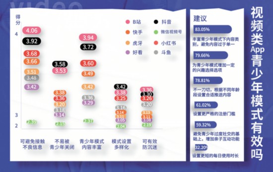 面對目前各平臺青少年模式良莠不齊的現(xiàn)狀,參與測評的大學(xué)生也有自己的見解。在剛剛畢業(yè)1年的95后教師姜煒眼里,部分軟件青少年模式下推薦的內(nèi)容不能滿足青少年的興趣?!昂每匆曨l給我推薦的都是動畫片,我教的高中生不太感興趣;小紅書的青少年模式入口有點難找,找到以后推薦給我的都是考研相關(guān)內(nèi)容,對未成年人來說可讀性不高;斗魚、虎牙這類直播平臺,本身大部分都是游戲類內(nèi)容,青少年模式下幾乎大多數(shù)內(nèi)容都會被屏蔽,我相信任何使用這兩款軟件的青少年都不愿意使用青少年模式。”不過,他給抖音和B站打了高分?!斑@兩款軟件的推送內(nèi)容除了有興趣類的,還有一些名師課程,符合青少年的興趣。”