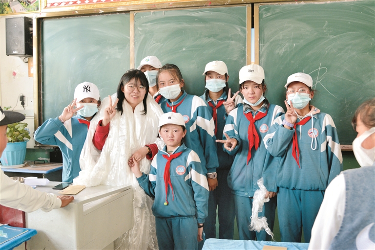 圖為支教結(jié)束,劉鋆鈺與達孜區(qū)孩子們的最后一節(jié)課。 拉薩融媒記者 凃 瓊攝