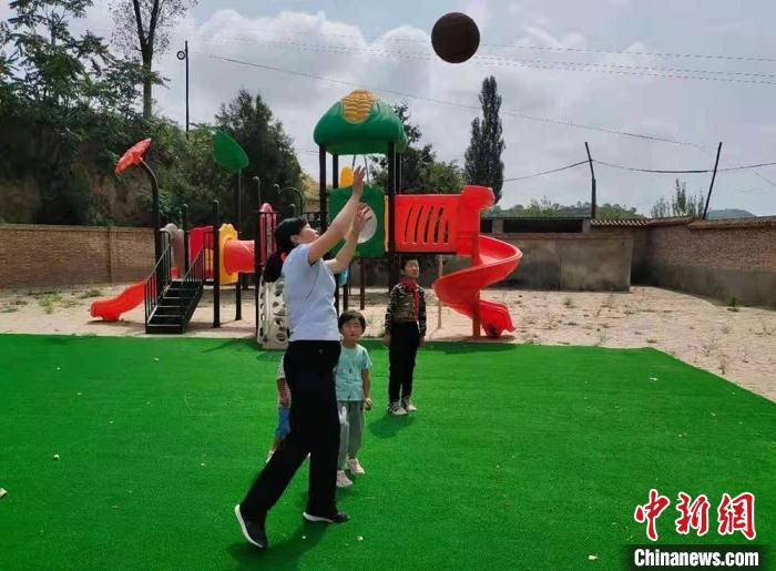 近年來,楊新莊小學教學條件在不斷改善。圖為王寶花帶領(lǐng)學生們在操場上玩耍。(資料圖) 解天文 攝