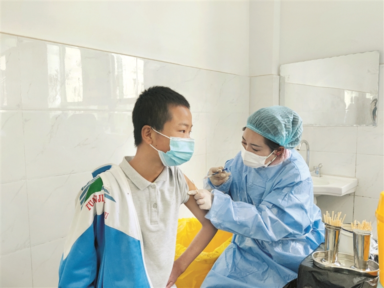 圖為拉薩市第八中學(xué)學(xué)生正在接種疫苗。拉薩融媒記者 余洋洋攝