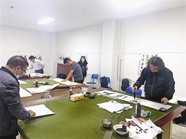 圖為北京和拉薩兩地書法家在拉薩師范高等專科學(xué)校開展書法筆會交流。 記者 裴聰 攝