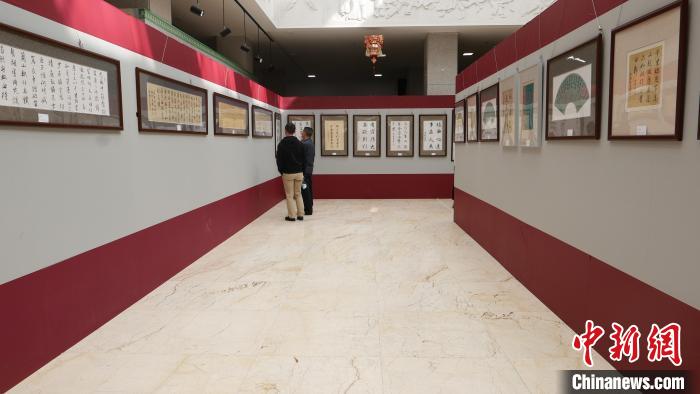 圖為市民在展廳內(nèi)觀看書法作品?!≈x牧 攝