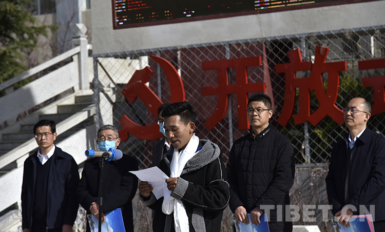圖為西藏職業(yè)技術(shù)學(xué)院2020屆首批區(qū)外就業(yè)畢業(yè)生出征儀式上,學(xué)生代表邊巴次仁發(fā)言 攝影:王媛媛