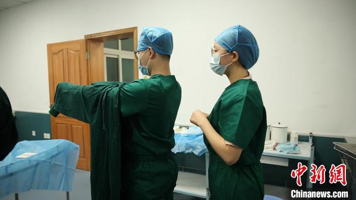圖為學生在練習穿脫手術衣。(資料圖) 甘肅中醫(yī)藥大學第一臨床醫(yī)學院供圖