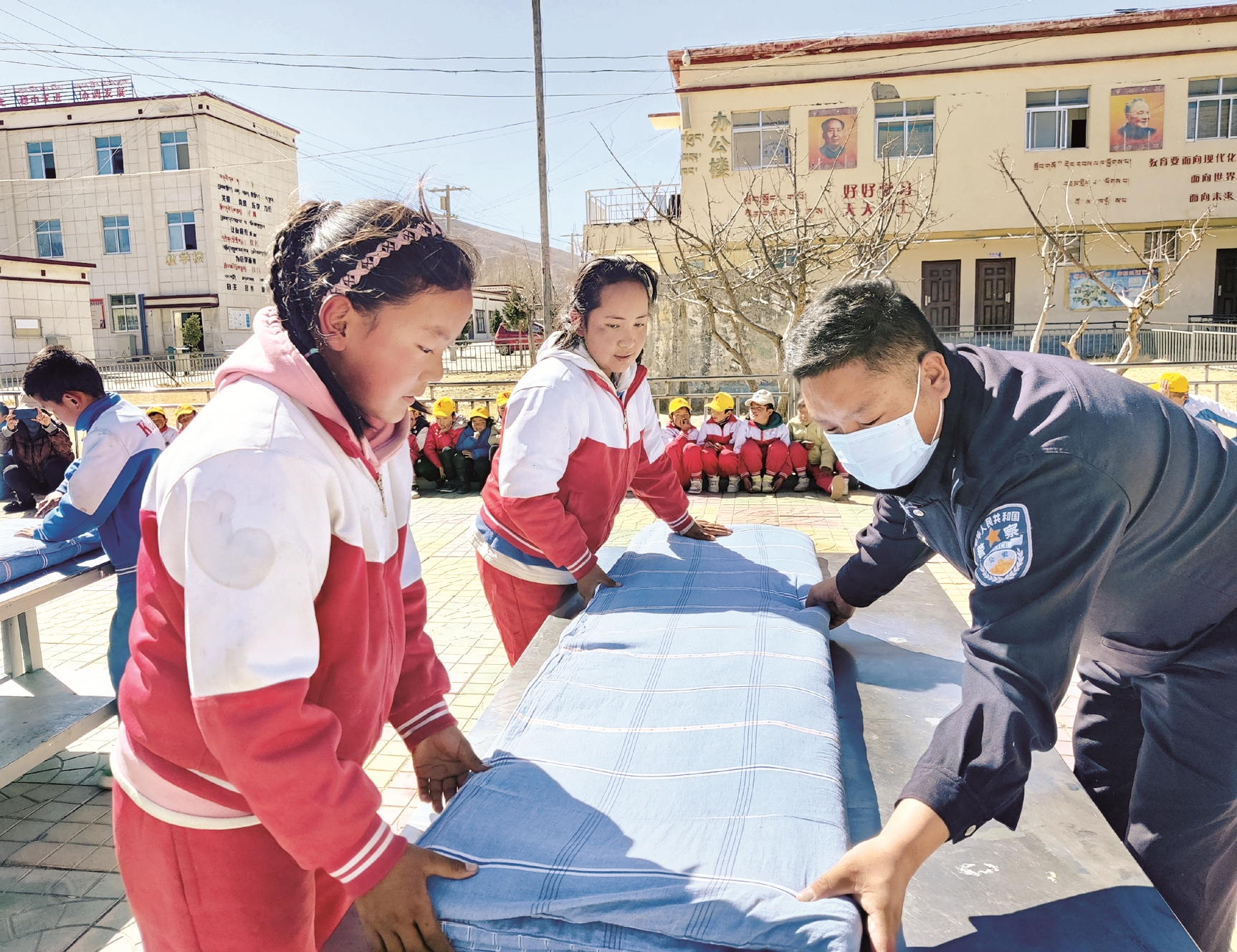圖為拉薩出入境邊防檢查站民警教學(xué)生采用“一鋪二折三切四疊”的方法,將被子疊成“豆腐塊”。拉薩融媒記者 余洋洋攝