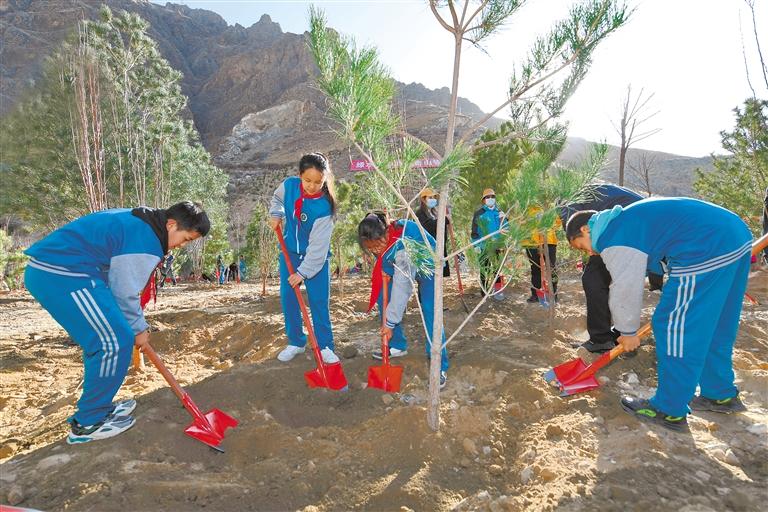 為踐行綠水青山就是金山銀山理念,積極推進生態(tài)文明建設(shè),日前,拉薩市姜昆黃小勇希望小學學生和社會各界人士,共同開展義務(wù)植樹活動。