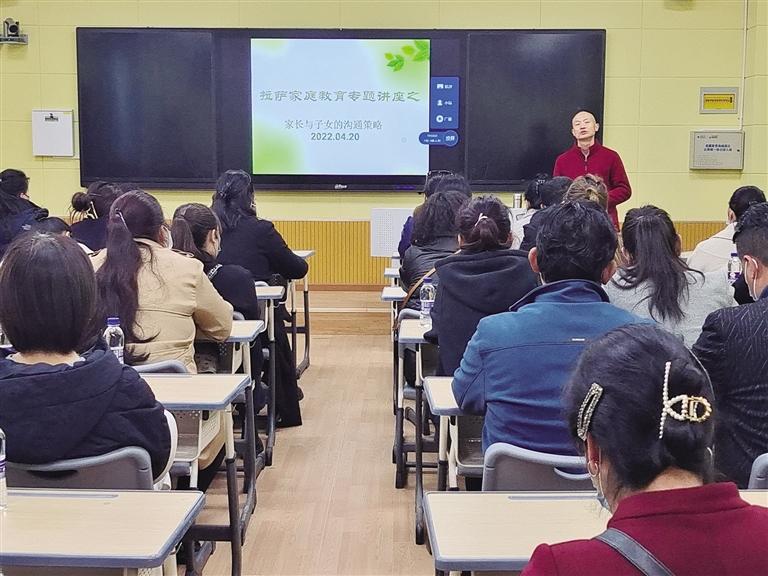 據(jù)拉薩市教育局青少年實踐基地主任扎西平措介紹,家庭教育在孩子成長過程中發(fā)揮著重要作用,為促進學生全面發(fā)展,營造良好的教育生態(tài),拉薩市教育局今年將在全市開展家庭教育系列活動,并將出臺關于家庭教育工作的實施意見?!案裆;ā奔彝ソ逃嬷v堂在納金小學開設,是此次系列活動的開始,主要是為了達到家校共同育人的目的,為學生健康快樂成長保駕護航。