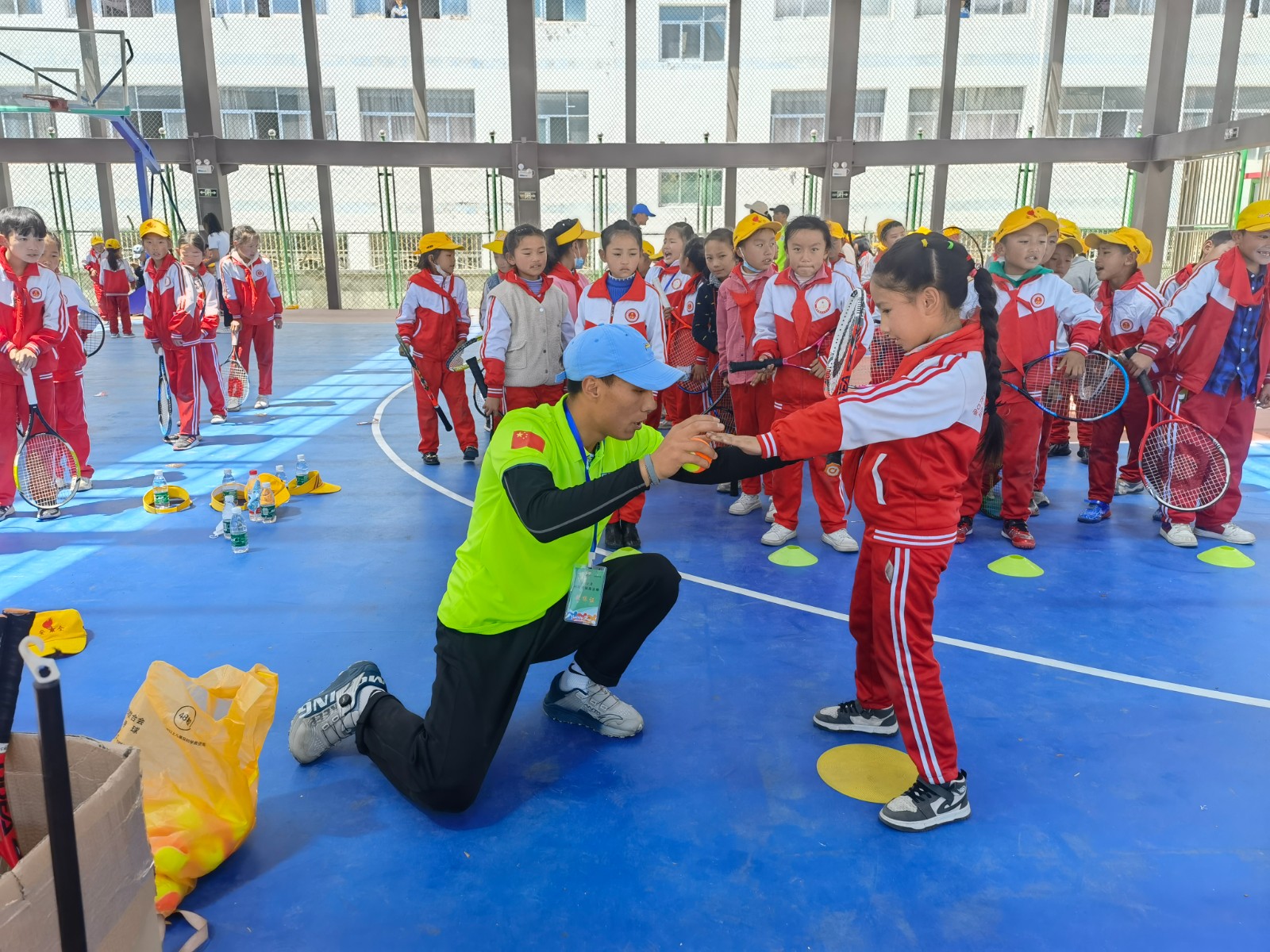 圖為西藏自治區(qū)網(wǎng)球協(xié)會(huì)向?qū)W校師生捐贈(zèng)網(wǎng)球裝備