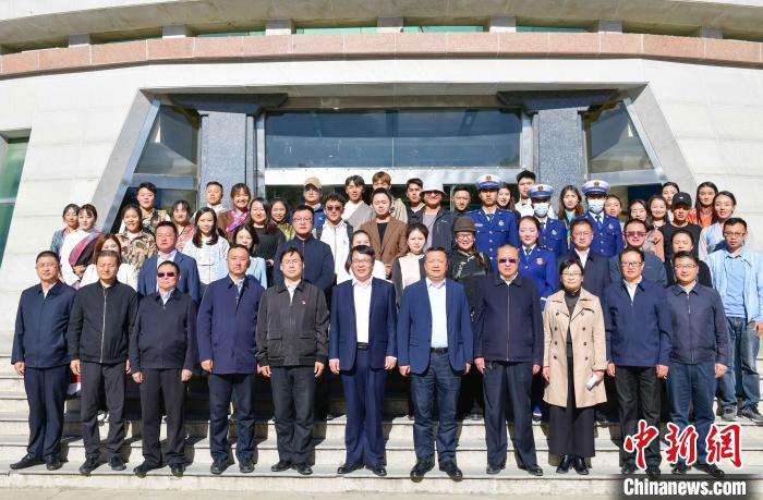 圖為簽約儀式上媒體單位負(fù)責(zé)人跟西藏民族大學(xué)的實習(xí)生合影?!∝暩聛硭?攝