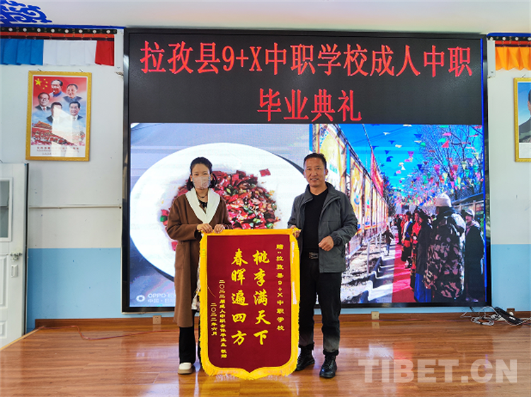 典禮上,拉孜縣9+X中職學(xué)校校長旦珍旺加對廣大畢業(yè)生殷殷囑托,希望他們在今后的工作崗位上事業(yè)有成、蒸蒸日上。隨后由成人中職學(xué)校代表、學(xué)生家長向?qū)W校贈送錦旗,以感謝學(xué)校一直以來為學(xué)生們提供學(xué)習(xí)與實踐平臺,為孩子們培養(yǎng)技能。