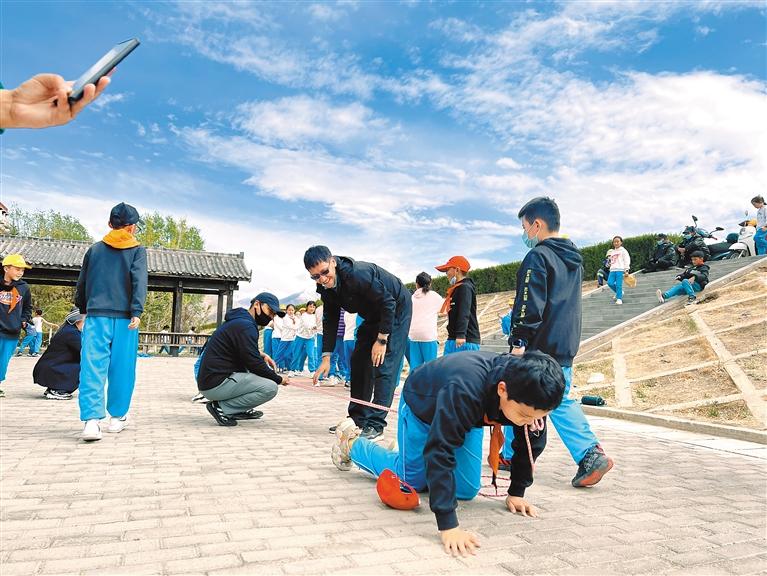 圖為拉薩市第一小學(xué)學(xué)生們在老師的帶領(lǐng)下開展戶外活動。