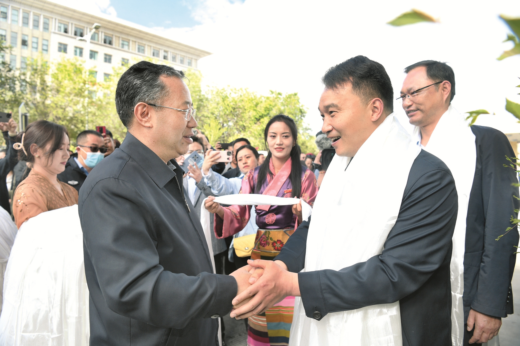 區(qū)黨委常委、市委書記普布頓珠,以及果果、陳靜、尼瑪、李忠海、普衛(wèi)東、張定成、王慧、張春陽等拉薩市黨政軍領(lǐng)導(dǎo)和市(直)各單位、各縣(區(qū))干部職工自發(fā)來到援藏干部人才駐地、機場,為即將離藏的江蘇省援藏干部人才送行,向大家獻上潔白的哈達,祝福他們一路順風(fēng)、身體健康、工作順利、扎西德勒。