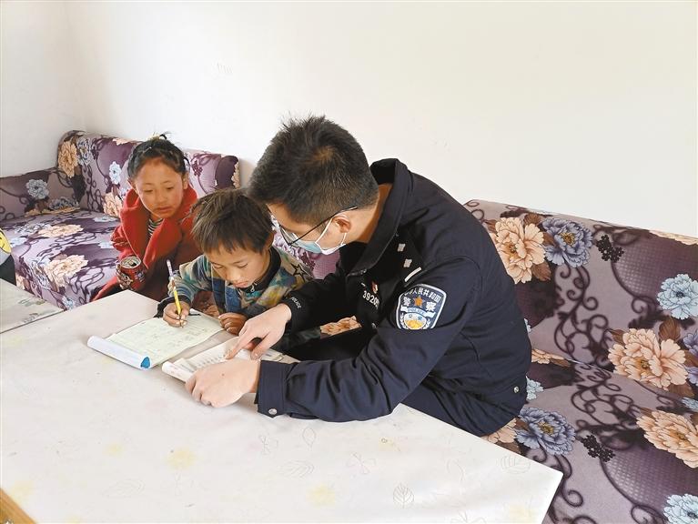 “羅知、亞東、索朗卓瑪,你們平時(shí)在外地上學(xué),不經(jīng)?;貋恚裉煳覀儗3躺祥T來看望你們?!绷_知、亞東是大哥和二哥,在市職業(yè)技術(shù)學(xué)校上高中,索朗卓瑪是三姐,在縣里上初中,為了節(jié)省路費(fèi),3個(gè)孩子平時(shí)都很少回家,2021年春節(jié)期間,當(dāng)?shù)弥⒆觽兌蓟丶业南⒑?,派出所民警特意上門為孩子們帶去新春祝福,并送上了助學(xué)金。自2011年,上察隅邊境派出所成立以來,依托“背包民警”特色工作方法,長期幫扶轄區(qū)困難兒童7名,孤寡老人13名,從精神和物質(zhì)上充分給予慰藉和幫助,切實(shí)增強(qiáng)了轄區(qū)群眾的幸福感。