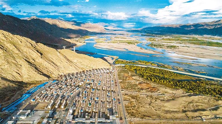 位于貢嘎縣的森布日搬遷安置點(diǎn)(2020年9月24日攝,無(wú)人機(jī)照片)。新華社記者 孫非 攝