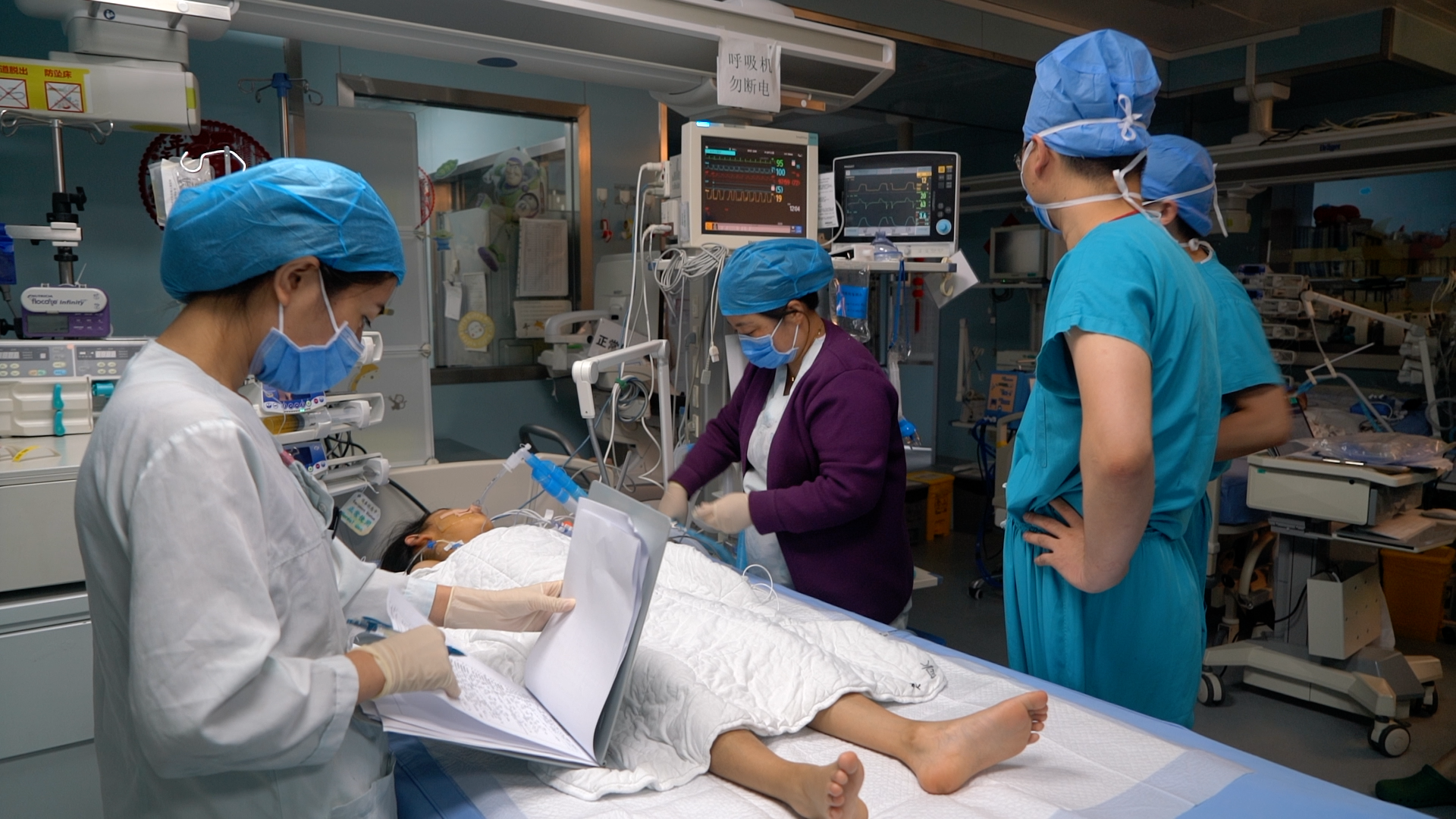 圖為患兒出院前向院方和“同心共鑄中國(guó)心”基金會(huì)敬送錦旗