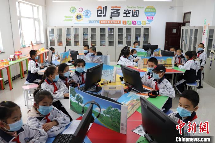 在天??h天師附小智慧教室內(nèi),農(nóng)牧區(qū)的孩童“觸網(wǎng)”感知外面的世界。 天??h委宣傳部供圖