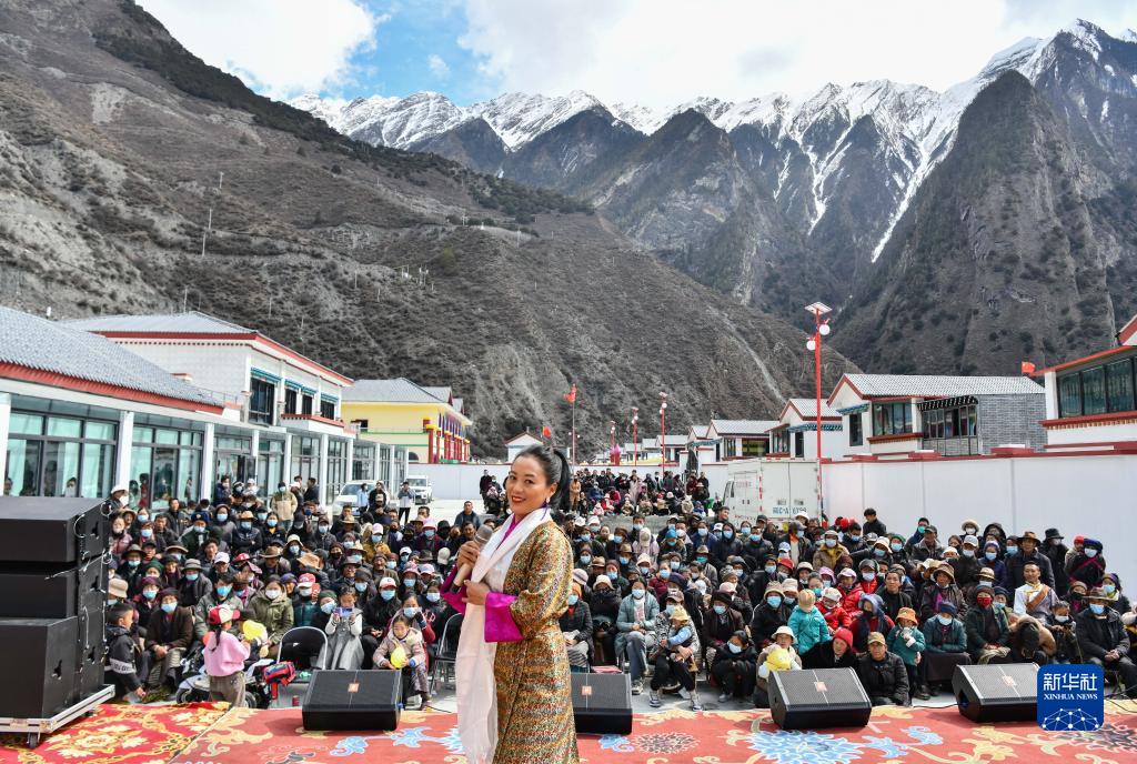 當日,西藏山南市隆子縣藝術團來到隆子縣斗玉珞巴民族鄉(xiāng)繞讓搬遷安置點開展迎接藏歷新年文藝演出。據(jù)悉,該安置點的群眾于2023年1月上旬完成搬遷入住,他們將在新家迎接即將到來的藏歷新年。