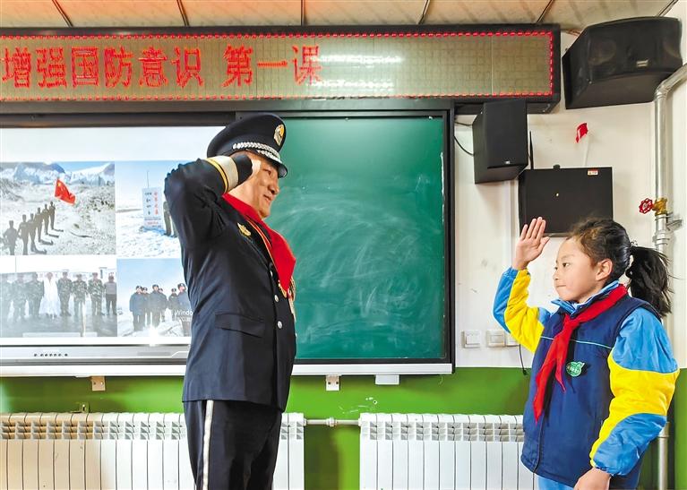 拉薩市城關區(qū)拉魯小學以“弘揚紅色文化 增強國防意識”為主題上好“開學第一課”。這是學生與宣講員索朗達杰互動。記者 袁海霞 鄭璐 攝