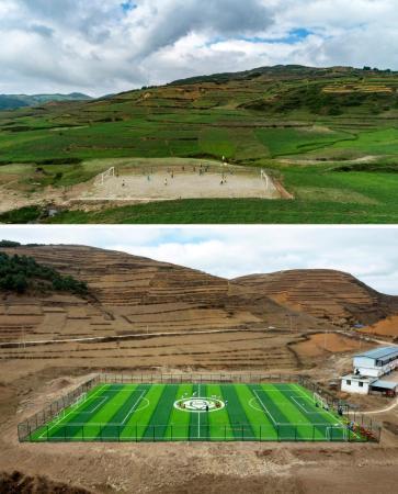 慢慢地,好幾個其他的教學點陸續(xù)并入,周邊三個村的家長都把孩子送到這里來上學??粗⒆觽冋n余時間滿山地跑,一直喜愛足球的曲比史古心想,何不像城里學校一樣開展足球運動呢?
