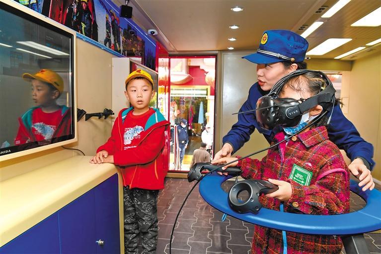 消防隊(duì)員借助VR模擬系統(tǒng),為孩子們講解防火防災(zāi)知識。記者 丹增群培 攝