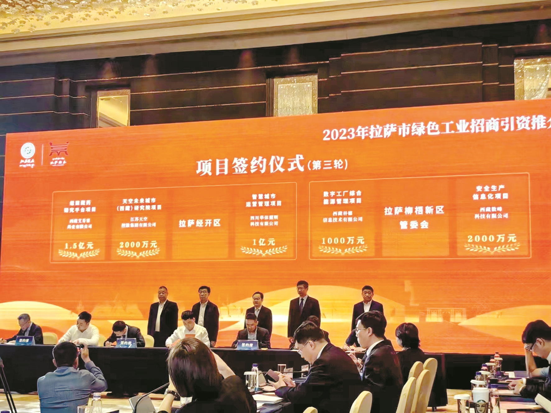 4月17日,2023年拉薩市綠色工業(yè)招商引資推介會(huì)暨項(xiàng)目簽約儀式在南京舉行,活動(dòng)由拉薩市人民政府、西藏自治區(qū)招商局、江蘇援藏前方指揮部主辦,拉薩市商務(wù)局、拉薩經(jīng)濟(jì)技術(shù)開(kāi)發(fā)區(qū)聯(lián)合承辦。江蘇省商務(wù)廳副廳長(zhǎng)倪海清、江蘇省工業(yè)和信息化廳二級(jí)巡視員宋旭東、西藏自治區(qū)招商局副局長(zhǎng)次旦格來(lái)應(yīng)邀出席活動(dòng)并致辭,簽約企業(yè)代表、拉薩市各縣(區(qū))、經(jīng)濟(jì)功能園區(qū)分管招商工作負(fù)責(zé)人以及知名企業(yè)代表近140余人參加推介會(huì)。本次推介會(huì)共簽約項(xiàng)目15個(gè),協(xié)議投資達(dá)32.3億元。