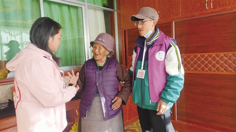 旦羅(右一)參與關愛空巢老人公益活動。圖由受訪者提供