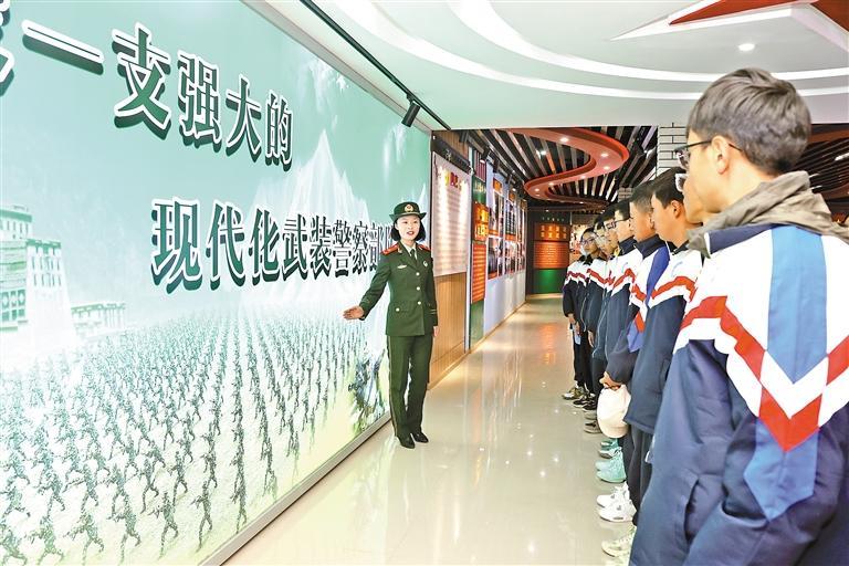 武警官兵帶領(lǐng)學(xué)生參觀營區(qū)。索朗旺堆 記者 旦增蘭澤 攝