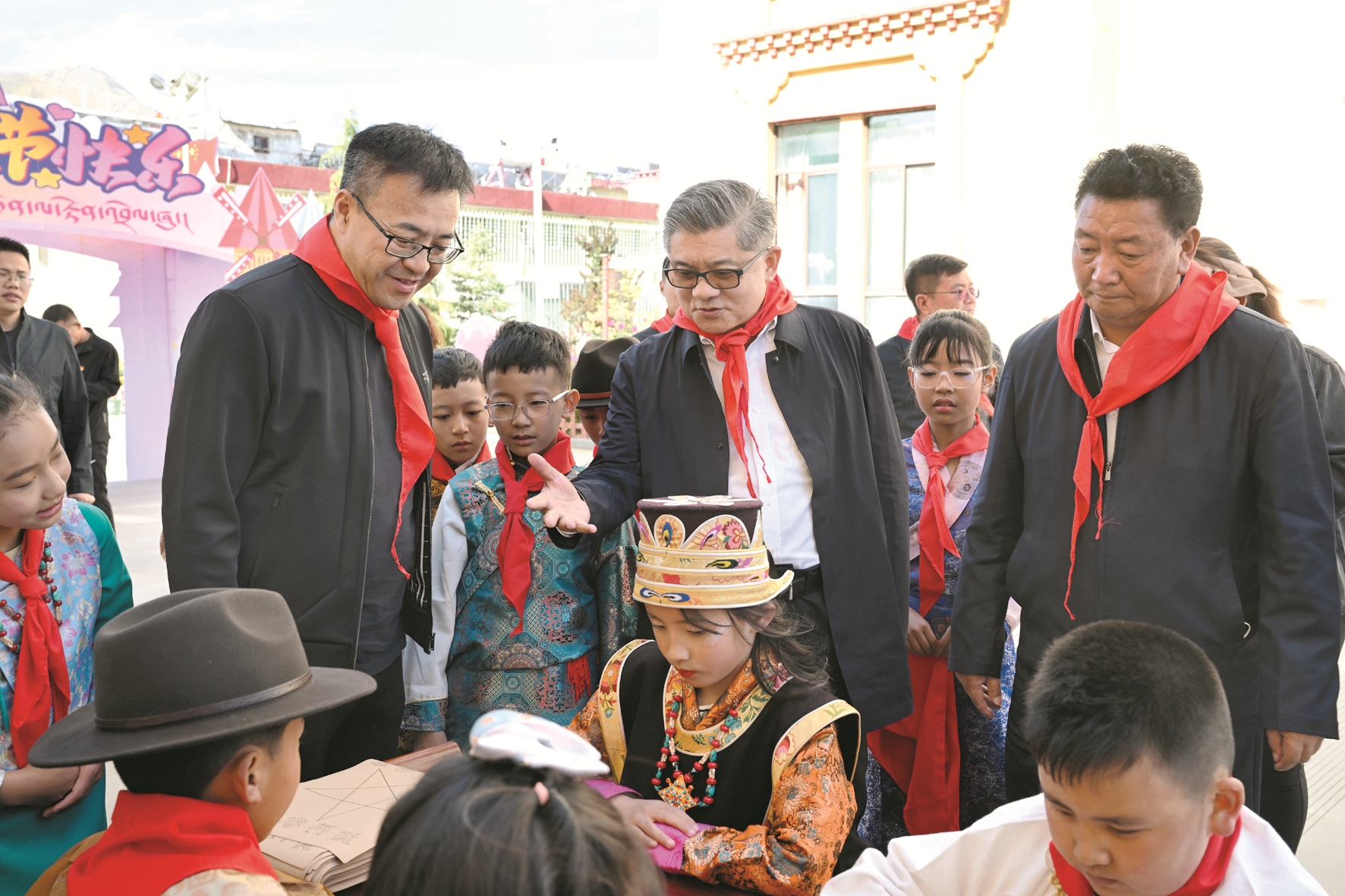 夏日的拉薩陽(yáng)光明媚,操場(chǎng)上,孩子們正在開(kāi)展“六一”兒童節(jié)文藝匯演活動(dòng),王強(qiáng)一行興致勃勃地觀看演出,對(duì)孩子們積極向上、充滿活力的精彩表演連連鼓掌,向孩子們送去了節(jié)日的祝福,希望大家牢記習(xí)近平總書(shū)記的囑托,勤奮學(xué)習(xí)、掌握本領(lǐng),努力成為新時(shí)代社會(huì)主義建設(shè)者和接班人。希望廣大教師要牢記為黨育人、為國(guó)育才使命,引導(dǎo)他們扣好人生第一??圩?,努力培養(yǎng)有理想、有道德、有文化、有紀(jì)律的時(shí)代新人。