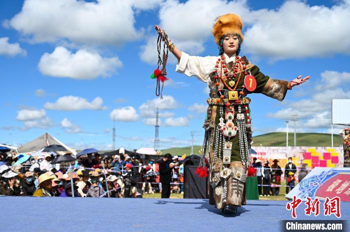 2023年8月,那曲恰青賽馬節(jié)上旅游形象大使比賽。 中新社記者 趙朗 攝