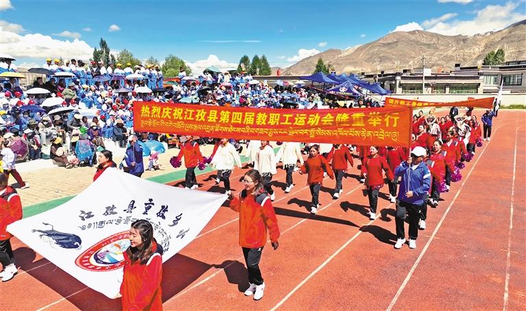 運(yùn)動(dòng)會(huì)開幕式上,各方隊(duì)入場(chǎng)場(chǎng)景。記者 扎西頓珠 攝