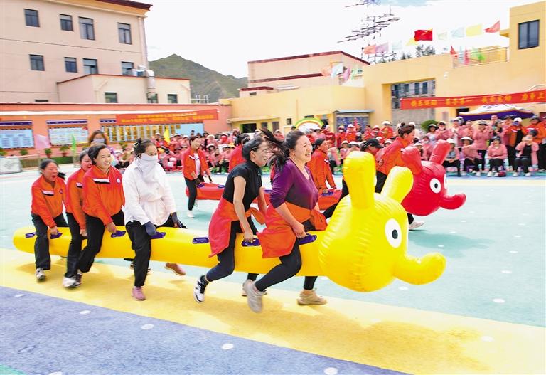 圖為氣氛熱烈的趣味運動會現(xiàn)場。記者 央金 攝