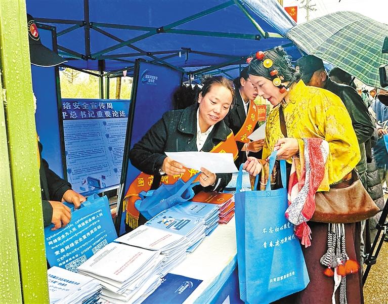 圖為那曲市索縣網(wǎng)信辦工作人員向過往群眾講解網(wǎng)絡安全知識。記者 曲珍 攝